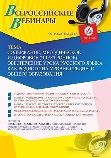 Вебинар «Содержание, методическое и цифровое (электронное) обеспечение урока русского языка как родного на уровне среднего общего образования» Вебинары УчМет | V4.Ru: Маркетплейс