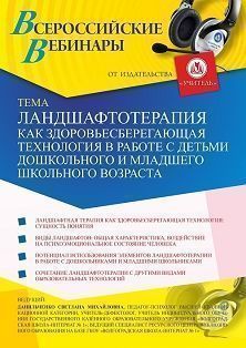 Вебинар «Ландшафтотерапия как здоровьесберегающая технология в работе с детьми дошкольного и младшего школьного возраста»