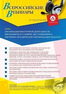 Вебинар «Организация внеурочной деятельности школьников в условиях дистанционного обучения: методические рекомендации педагогу»