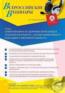 Вебинар «Глинотерапия как здоровьесберегающая технология в работе с детьми дошкольного и младшего школьного возраста»