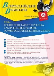 Вебинар «Предречевое развитие ребенка как важнейшее условие формирования языковых навыков»