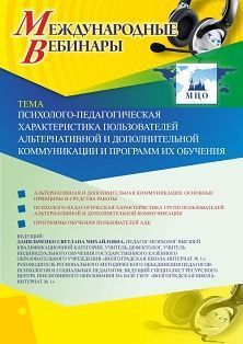 Международный вебинар «Психолого-педагогическая характеристика пользователей альтернативной и дополнительной коммуникации и программ их обучения» Вебинары УчМет | V4.Ru: Маркетплейс