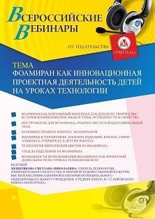 Вебинар «Фоамиран как инновационная проектная деятельность детей на уроках технологии»