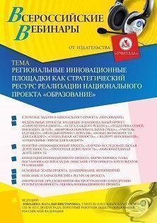 Вебинар «Региональные инновационные площадки как стратегический ресурс реализации национального проекта “Образование”» Вебинары УчМет | V4.Ru: Маркетплейс