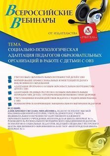 Вебинар «Социально-психологическая адаптация педагогов образовательных организаций в работе с детьми с ОВЗ» Вебинары УчМет | V4.Ru: Маркетплейс