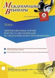 Международный вебинар «Инновационные формы работы со школьниками по экологическому просвещению» Вебинары УчМет | V4.Ru: Маркетплейс