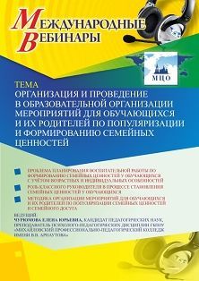 Международный вебинар «Организация и проведение в образовательной организации мероприятий для обучающихся и их родителей по популяризации и формированию семейных ценностей»