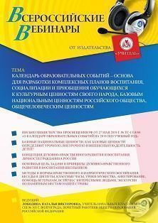 Вебинар «Календарь образовательных событий – основа для разработки комплексных планов воспитания, социализации и приобщения обучающихся к культурным ценностям своего народа, базовым национальным ценностям российского общества, общечеловеческим ценностям»