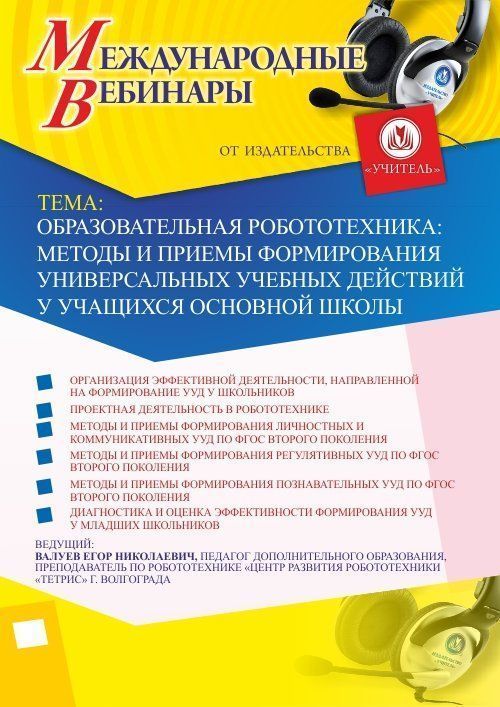 Приглашаем педагогов дополнительного образования, учителей-предметников принять участие в offline-вебинаре «Образовательная робототехника: методы и приемы формирования универсальных учебных действий у учащихся основной школы».