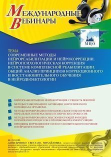 Международный вебинар «Современные методы нейрореабилитации и нейрокоррекции. Нейропсихологическая коррекция в системе комплексной реабилитации. Общий анализ принципов коррекционного и восстановительного обучения в нейродефектологии»
