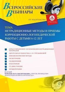 Вебинар «Нетрадиционные методы и приемы коррекционно-логопедической работы с детьми 6-12 лет»