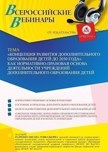 Вебинар «“Концепция развития дополнительного образования детей до 2030 года” как нормативно-правовая основа деятельности учреждений дополнительного образования детей»