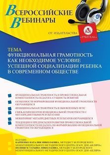 Вебинар «Функциональная грамотность как необходимое условие успешной социализации ребенка в современном обществе»