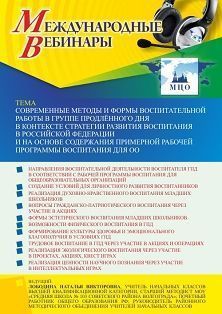 Международный вебинар «Современные методы и формы воспитательной работы в группе продлённого дня в контексте Стратегии развития воспитания в Российской Федерации и на основе содержания Примерной рабочей программы воспитания для ОО»