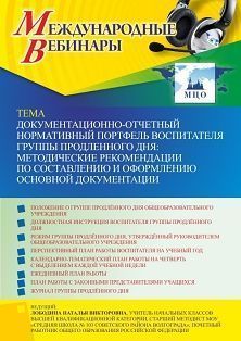 Международный вебинар «Документационно-отчетный нормативный портфель воспитателя группы продленного дня: методические рекомендации по составлению и оформлению основной документации»