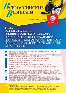 Вебинар «Осуществление индивидуального подхода и конкретизация требований по результатам образовательного процесса в условиях реализации ФГОС НОО-2021»
