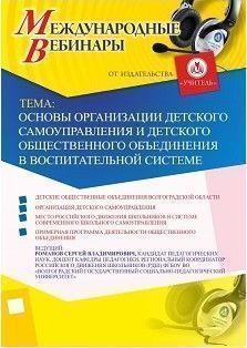 Приглашаем педагогов-организаторов, воспитателей ОО, заместителей руководителя, педагогов дополнительного образования принять участие в offline-вебинаре «Основы организации детского самоуправления и детского общественного объединения в воспитательной системе».