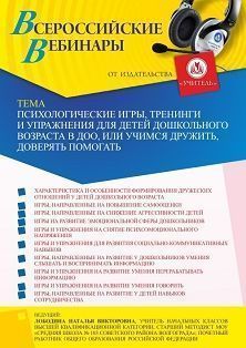 Вебинар «Психологические игры, тренинги и упражнения для детей дошкольного возраста в ДОО, или Учимся дружить, доверять, помогать»