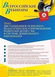 Вебинар «Дистанционное психолого-педагогическое сопровождение родителей детей с РАС в системе дошкольного образования» Вебинары УчМет | V4.Ru: Маркетплейс