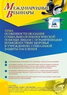 Международный вебинар «Особенности оказания социально-психологической помощи лицам с ограниченными возможностями здоровья в учреждениях социальной защиты населения»