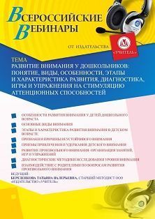 Вебинар «Развитие внимания у дошкольников: понятие, виды, особенности, этапы и характеристика развития, диагностика, игры и упражнения на стимуляцию аттенционных способностей»