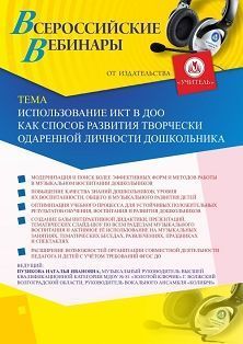 Вебинар «Использование ИКТ в ДОО как способ развития творчески одаренной личности дошкольника»
