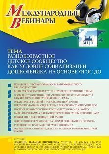 Международный вебинар «Разновозрастное детское сообщество как условие социализации дошкольника на основе ФГОС ДО»