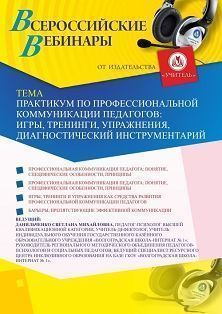 Вебинар «Практикум по профессиональной коммуникации педагогов: игры, тренинги, упражнения, диагностический инструментарий»
