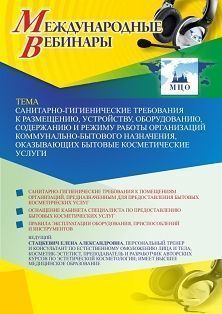 Международный вебинар «Санитарно-гигиенические требования к размещению, устройству, оборудованию, содержанию и режиму работы организаций коммунально-бытового назначения, оказывающих бытовые косметические услуги»