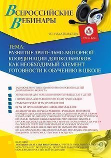 Вебинар «Развитие зрительно-моторной координации дошкольников как необходимый элемент готовности к обучению в школе»