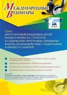 Международный вебинар «Центр игровой поддержки детей раннего возраста: структура и содержание программы, принципы работы, взаимодействие с родителями в процессе занятий»