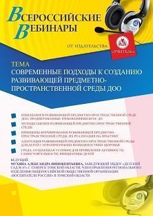 Вебинар «Современные подходы к созданию развивающей предметно-пространственной среды ДОО» Вебинары УчМет | V4.Ru: Маркетплейс