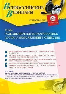 Вебинар «Роль библиотеки в профилактике асоциальных явлений в обществе» Вебинары УчМет | V4.Ru: Маркетплейс
