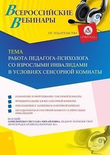 Вебинар «Работа педагога-психолога со взрослыми инвалидами в условиях сенсорной комнаты» Вебинары УчМет | V4.Ru: Маркетплейс
