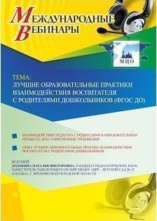 Международный вебинар "Лучшие образовательные практики взаимодействия воспитателя с родителями дошкольников (ФГОС ДО)"