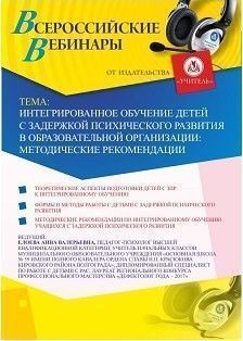 Вебинар "Интегрированное обучение детей с задержкой психического развития в образовательной организации: методические рекомендации"