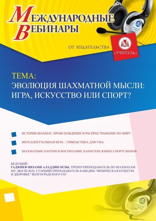 Приглашаем тренеров-преподавателей, инструкторов по физической культуре принять участие в offline-вебинаре «Эволюция шахматной мысли: игра, искусство или спорт?».