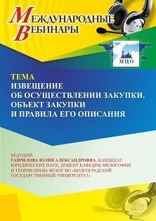 Международный вебинар «Извещение об осуществлении закупки. Объект закупки и правила его описания»