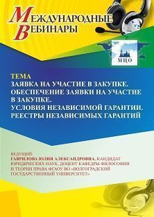 Международный вебинар «Заявка на участие в закупке. Обеспечение заявки на участие в закупке. Условия независимой гарантии. Реестры независимых гарантий»