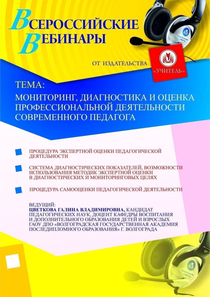 Приглашаем руководителей ОО, заместителей руководителя по УВР, педагогов, воспитателей, старших воспитателей, методистов, специалистов ДОО, специалистов в области образования принять участие в offline-семинаре «Мониторинг, диагностика и оценка профессиональной деятельности современного педагога».