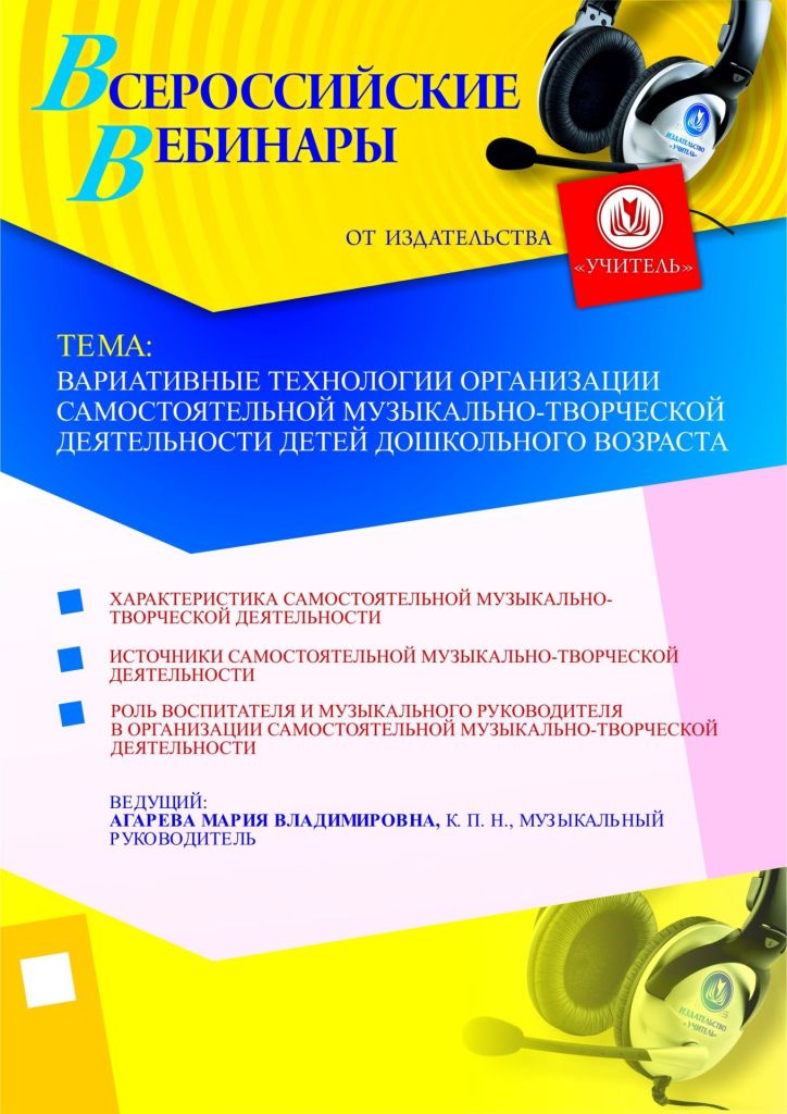 Приглашаем музыкальных руководителей, воспитателей, старших воспитателей, методистов, руководителей ДОО принять участие в offline-вебинаре «Вариативные технологии организации самостоятельной музыкально-творческой деятельности детей дошкольного возраста».