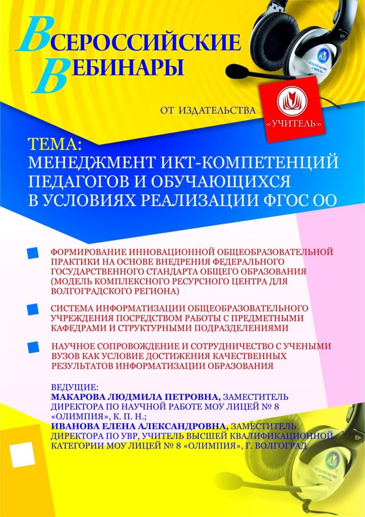 Приглашаем руководителей, заместителей директора по НМР, заместителей директора по УВР, педагогов образовательных организаций принять участие в offline вебинаре-тренинге «Менеджмент ИКТ-компетенций педагогов и обучающихся в условиях реализации ФГОС ОО».