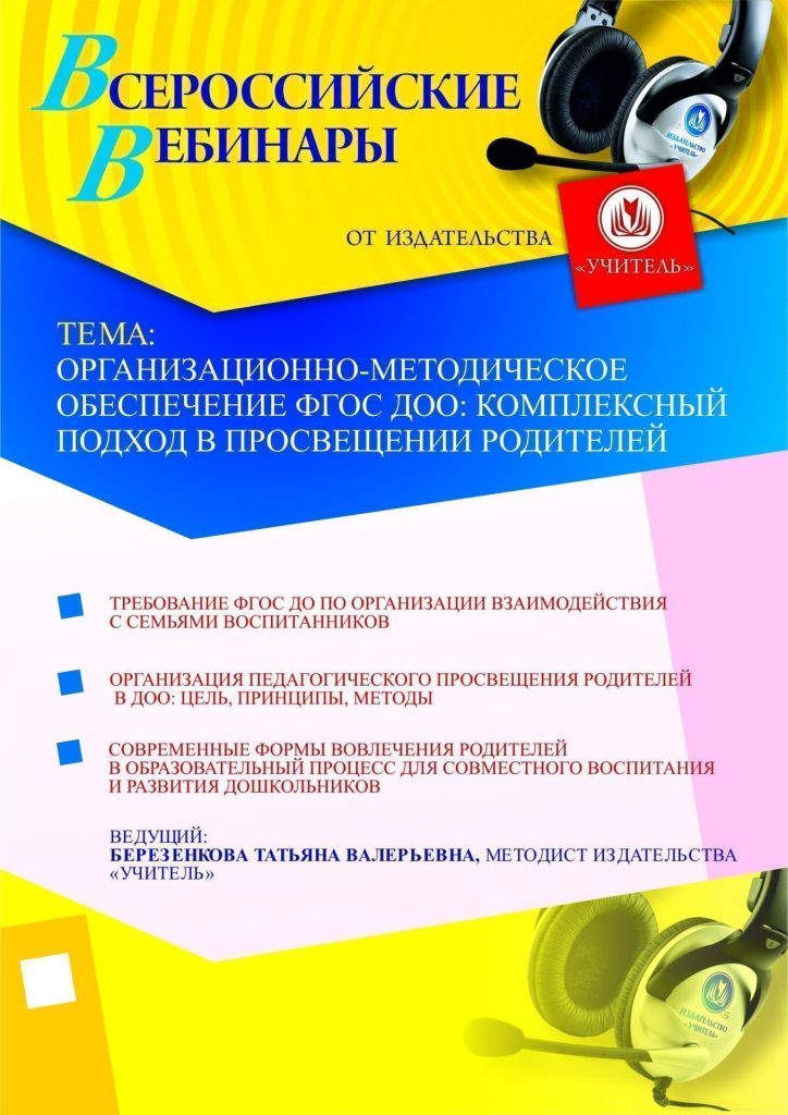 Приглашаем воспитателей, педагогов дополнительного образования, старших воспитателей, методистов, руководителей ДОО принять участие в offline-вебинаре «Организационно-методическое обеспечение ФГОС ДОО: комплексный подход в просвещении родителей».