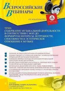 Вебинар «Содержание музыкальной деятельности в соответствии с ФОП ДО: формируем интересы, потребности, способности и эстетическое отношение к музыке»