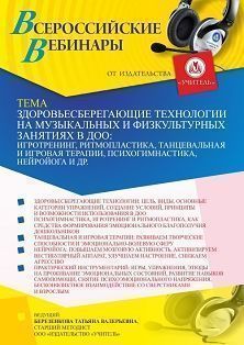 Вебинар «Здоровьесберегающие технологии на музыкальных и физкультурных занятиях в ДОО: игротренинг, ритмопластика, танцевальная и игровая терапии, психогимнастика, нейройога и др.»