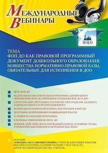 Международный вебинар «ФОП ДО как правовой программный документ дошкольного образования: новшества нормативно-правовой базы, обязательные для исполнения в ДОО»