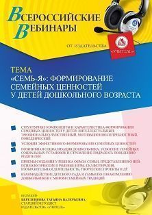Вебинар «“Семь-Я”: формирование семейных ценностей у детей дошкольного возраста»