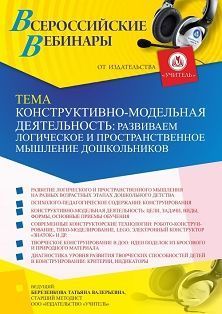 Вебинар «Конструктивно-модельная деятельность: развиваем логическое и пространственное мышление дошкольников»