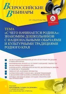 Вебинар «“С чего начинается Родина”: знакомим дошкольников с национальными обычаями и культурными традициями Родного края» Вебинары УчМет | V4.Ru: Маркетплейс