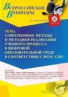 Вебинар «Современные методы и методики реализации учебного процесса в цифровой образовательной среде в соответствии с ФГОС СПО»